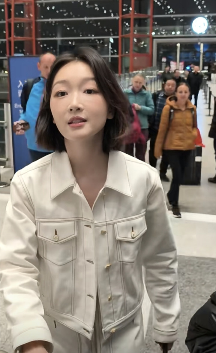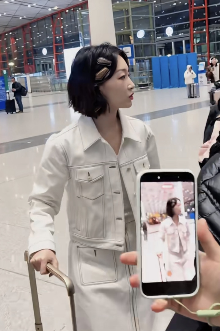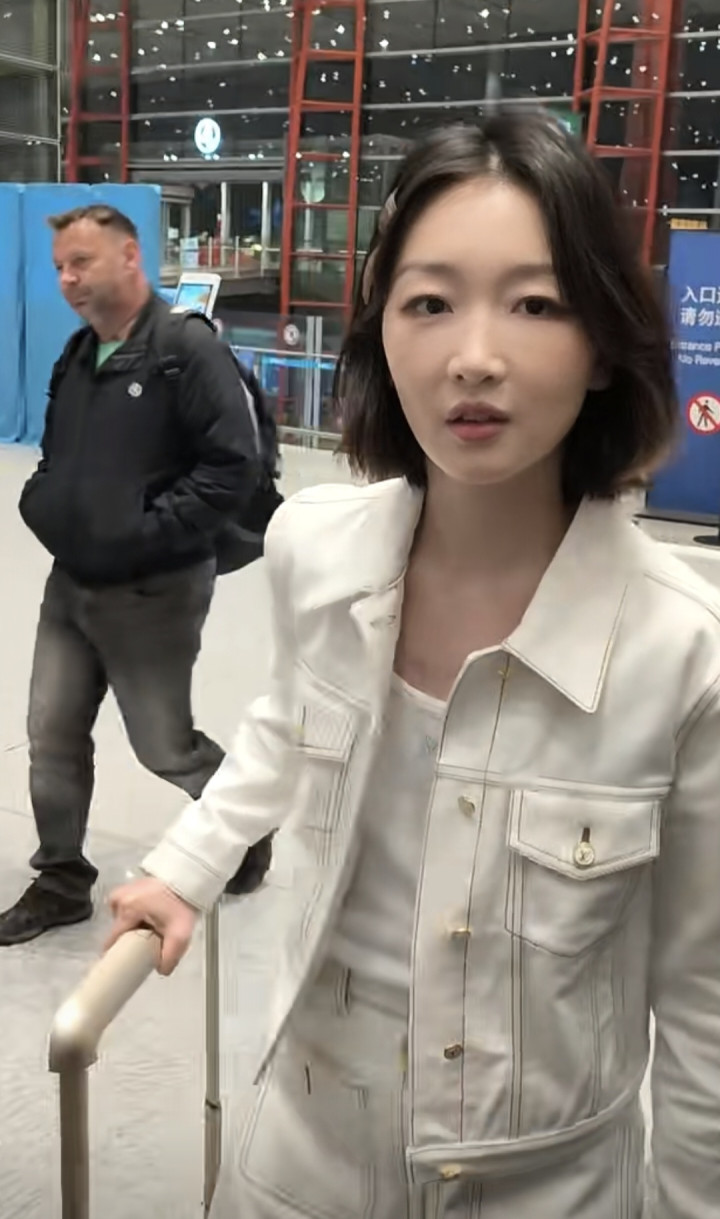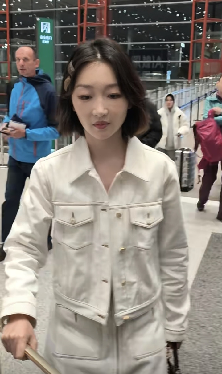 2026-03-09豪门国际app 周冬雨机场开赴, 短流配白色裙子套装, 气质
